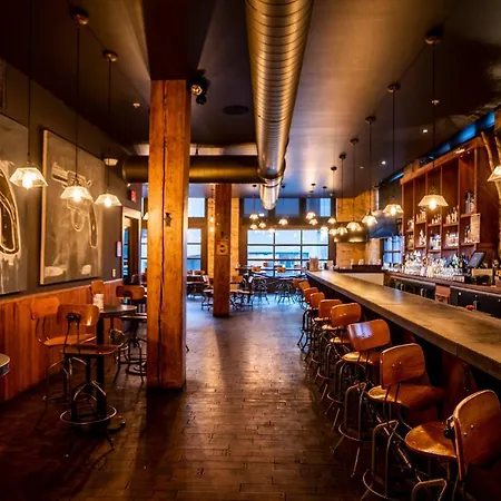 The Iron Horse Hotel is a boutique-style luxury accommodation designed for adult guests. Located near the Harley-Davidson Museum, it offers modern amenities paired with historical charm. The hotel features an on-site restaurant serving exceptional local cuisine along with options for drinks at the bar. Pet-friendly services take extra care to provide for guests traveling with their furry companions.